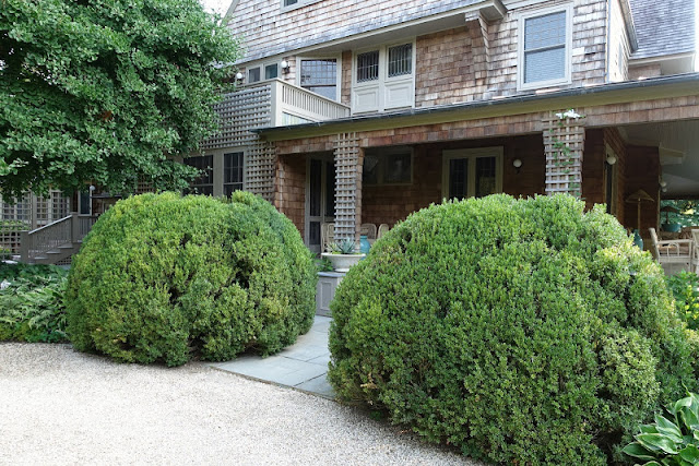 A few years ago, Martha made the decision to remove the signature teal trim from the house's facade (shown above), something a lot of Martha's readers were initially disappointed by. She replaced it with a more subdued shade of taupe and had the entire facade re-shingled. She also removed many of the climbing rose bushes from the front of the home (also shown above) and transferred them to her estate in Bedford, New York.